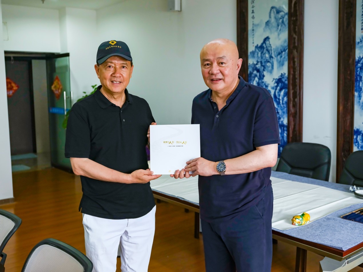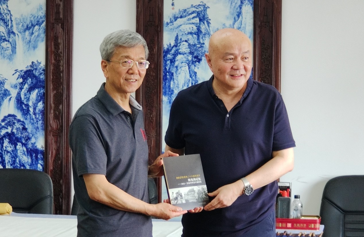 潘炳岩主席向刘蒙将军赠送了中国老摄影家协会《2022 • 首届中国老年摄影展》作品集;和光学站长向刘蒙将军赠送了《锵锵三人行》作品集。